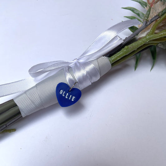 Metal stamped bridal bouquet name accessory