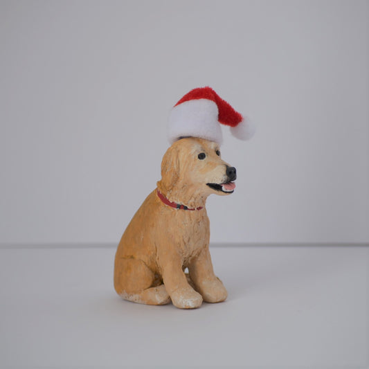 Custom Christmas dog figurine wearing Santa Hat