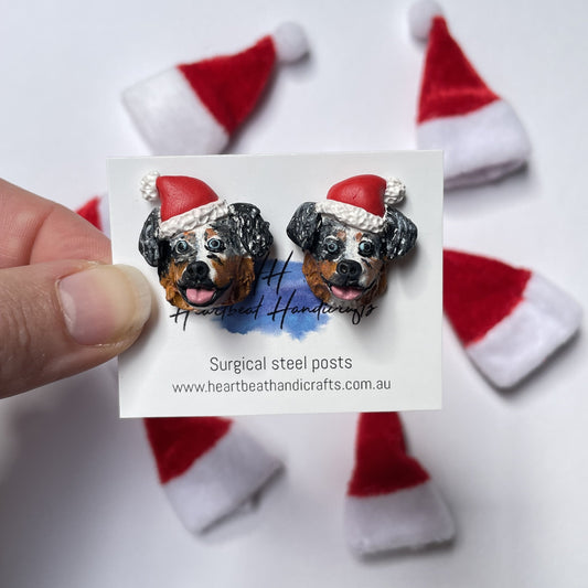Custom Christmas pet earrings wearing Santa hats
