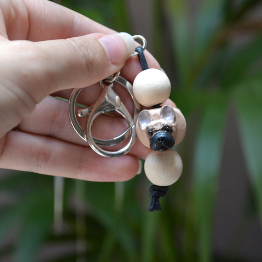 Fawn french bulldog keyring - handmade polymer clay frenchie keychain