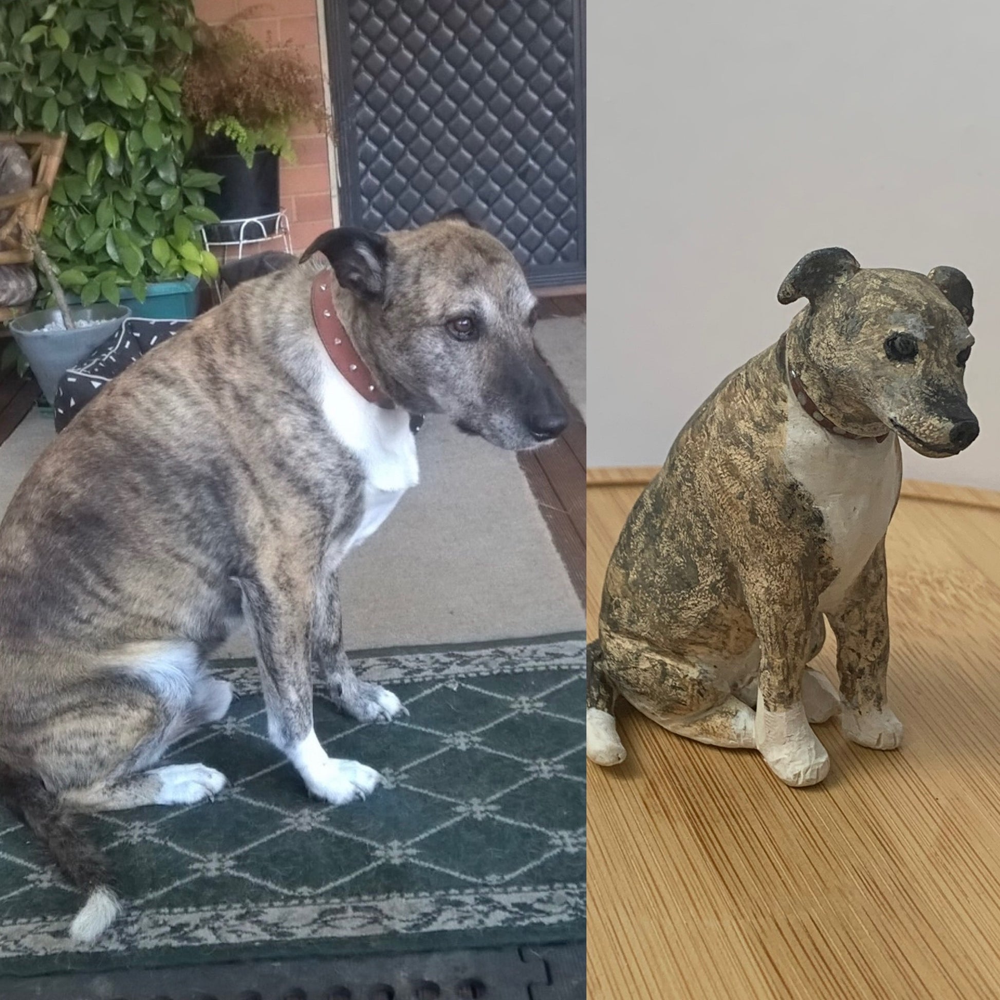 Once you've placed the order and sent photos of your cherished pet please also let me know any details that are a particular feature or easily missed in the photos. It is helpful if you are able to indicate which photo captures the facial expression you'd like the figurine to display.
