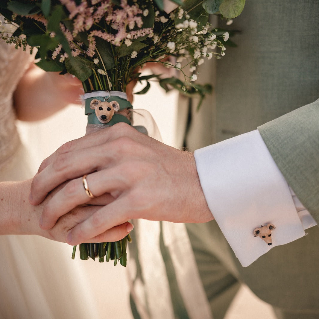 Are you looking for the perfect way to include your furry best friend (or friends) in your wedding day? Look no further than Pawfect Love's custom pet cufflinks and bouquet pendants set! Handcrafted with love and care, these beautiful pieces are sculpted from polymer clay to resemble your beloved pets.