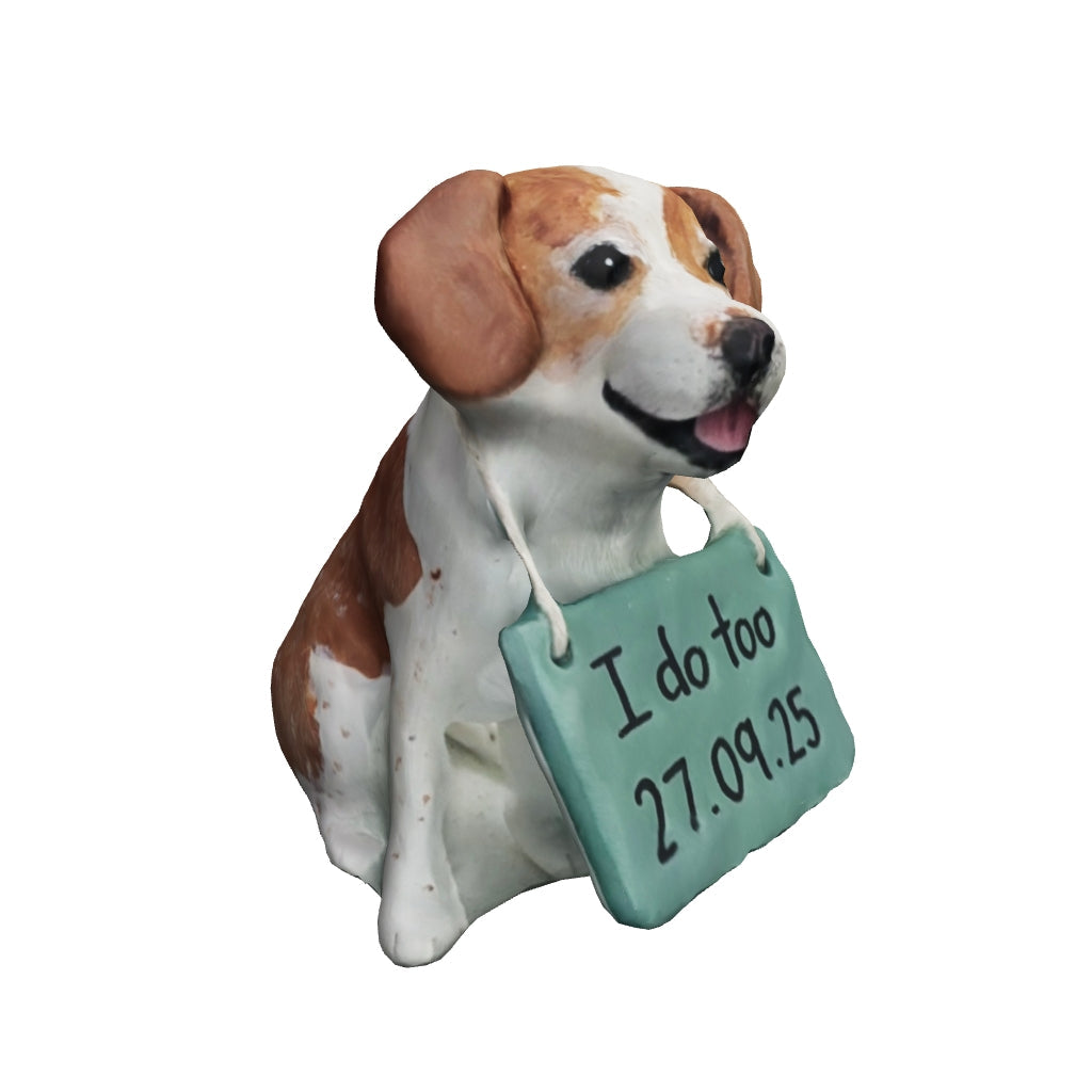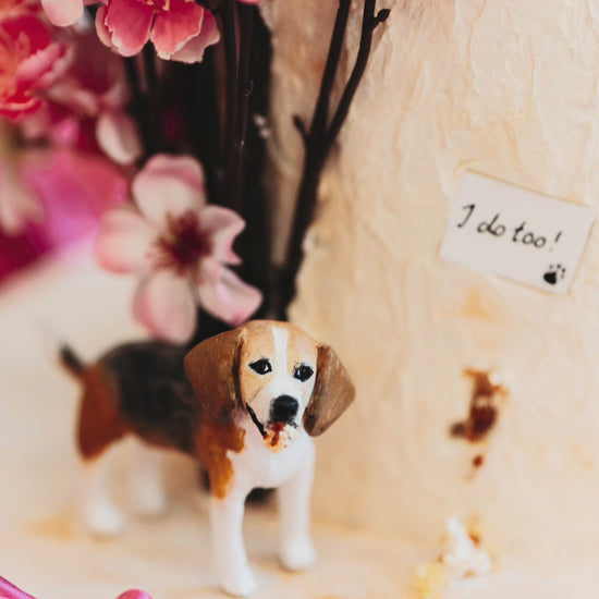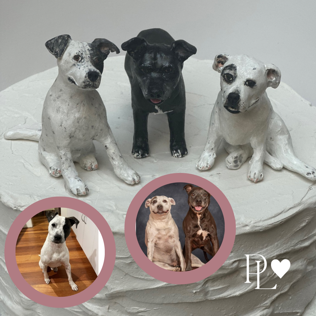 Custom wedding cake toppers crafted to look just like pets available in a range of sizes and poses, handmade by Dani.