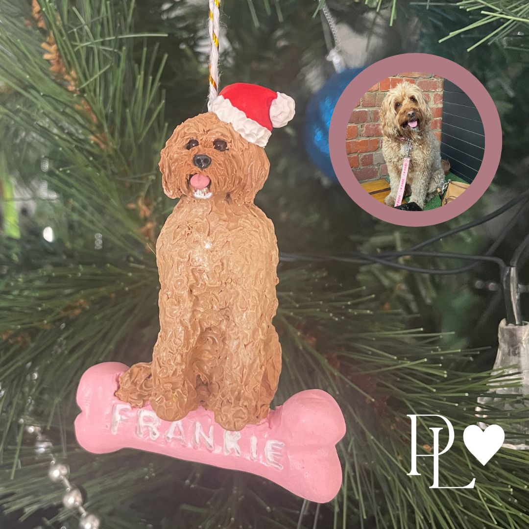 Once you provide a few photos of the pet, Dani will lovingly sculpt their face or full body from polymer clay with hanging hardware to create the custom made Christmas tree ornaments.