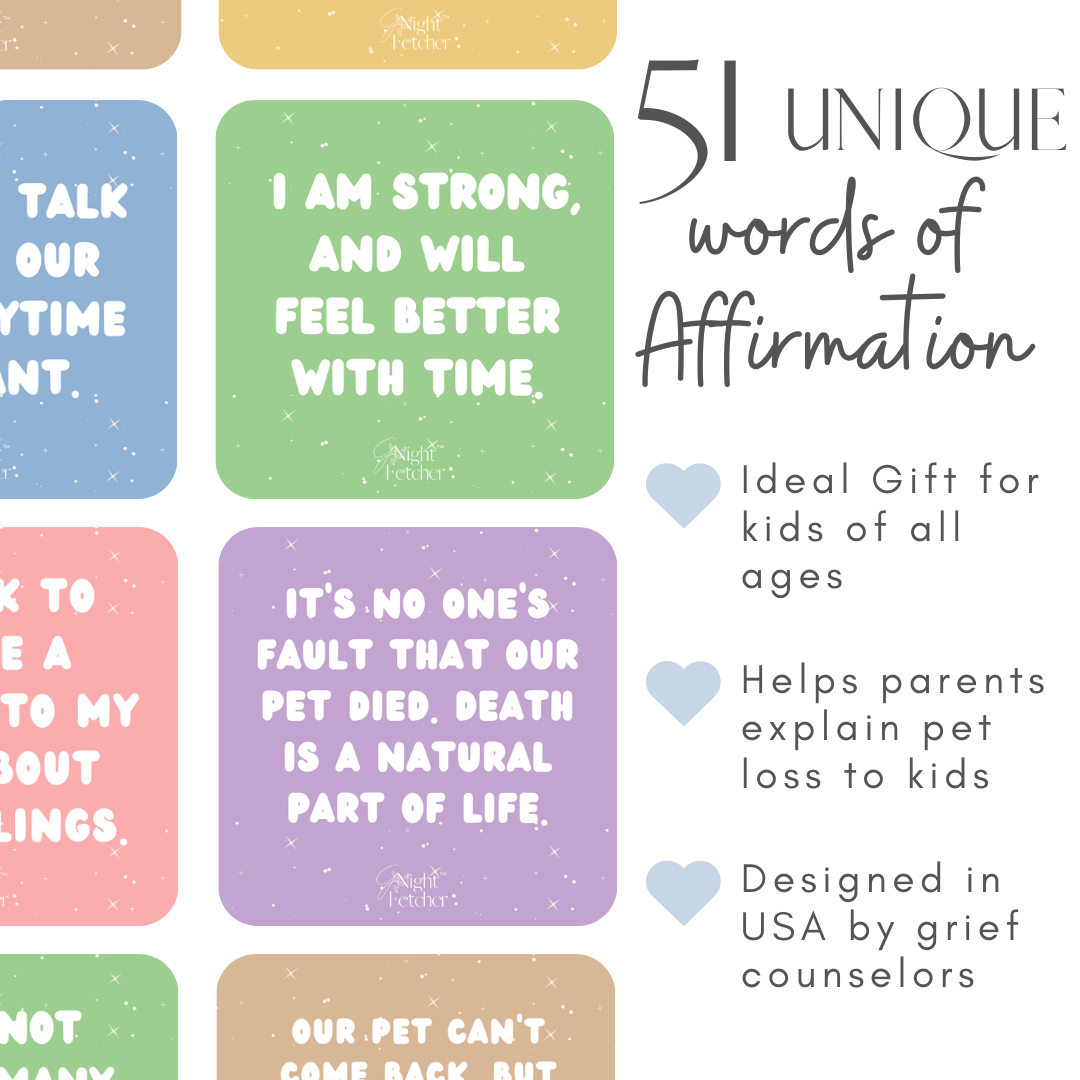 Pet Loss Comfort Cards For Kids - 51 Affirmations with Prompts