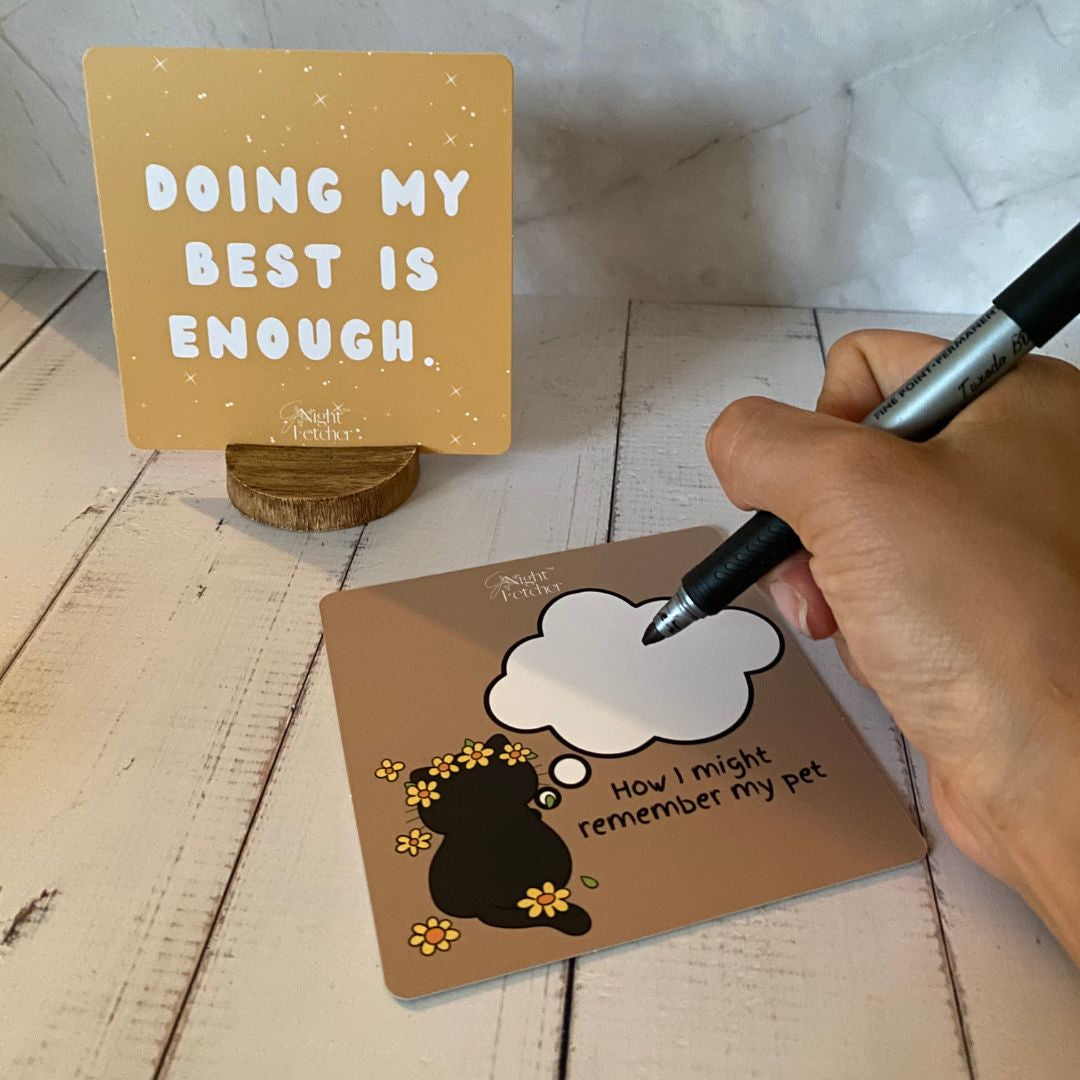 Made from high-quality 350 gsm paper, these cards can be saved as cherished keepsakes. They feature well-sized fonts and calming colors, designed for everyday use. Perfect pet memorial gifts that provide lasting comfort.