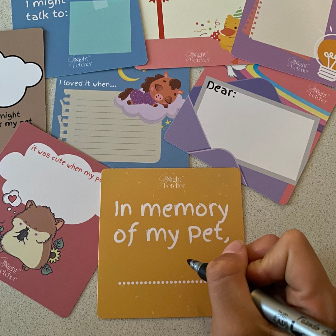 The comforting illustrations also provide space for a personal grief letter to a beloved pet, making these cards a thoughtful resource for navigating this emotional time.